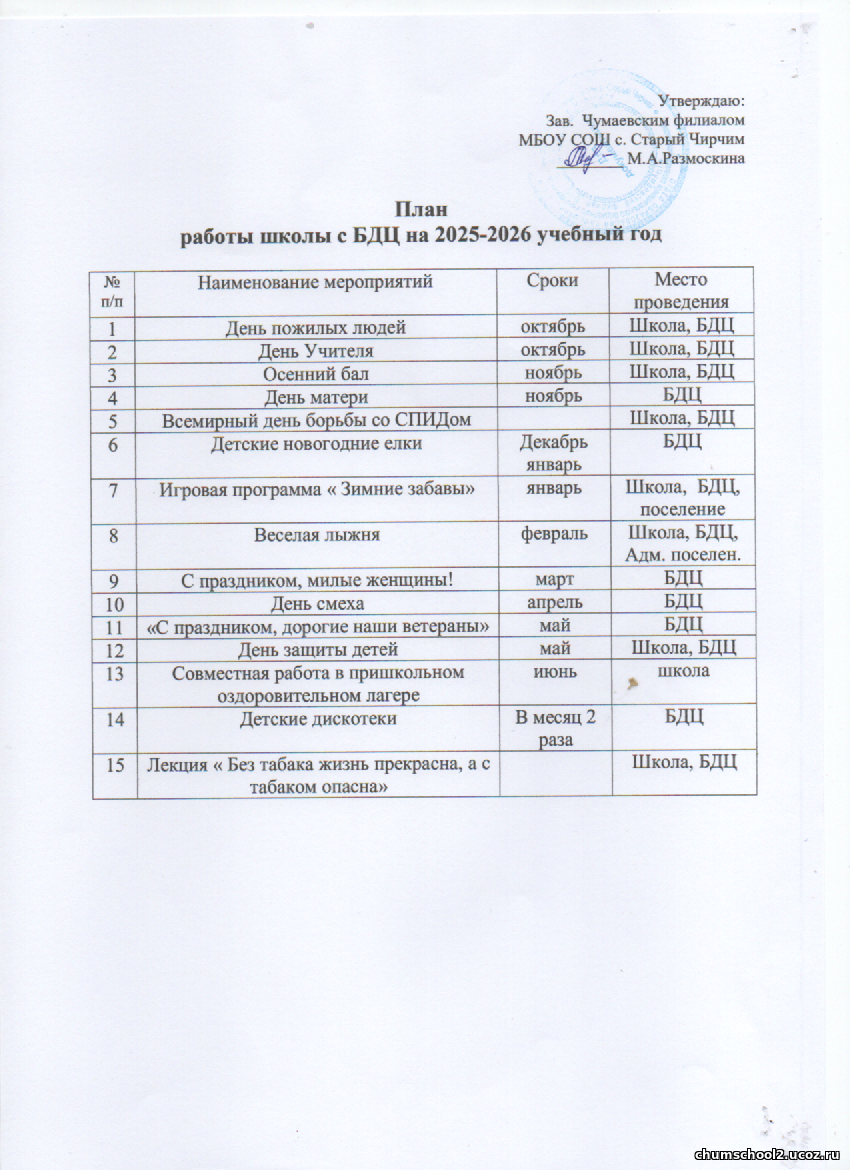 План совместной работы школы с БДЦ на 2025 - 2026 год